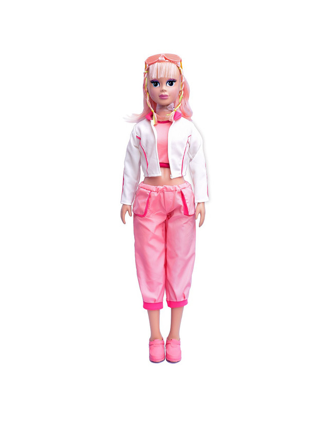 عروسک باربی بزرگ قد ۱۰6 سانت با لباس اسپرت شلوار بگ و جلیقه