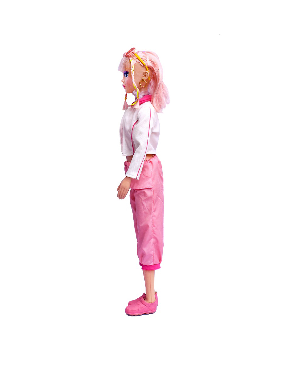 عروسک باربی بزرگ قد ۱۰6 سانت با لباس اسپرت شلوار بگ و جلیقه