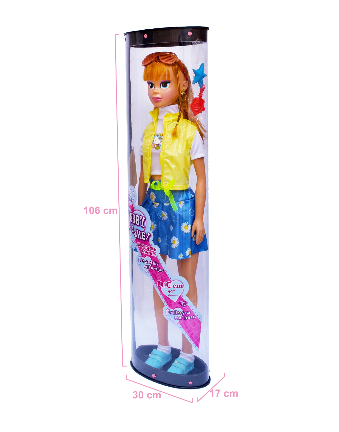 هرعروسک با قد 106 سانت دارای جعبه طلقی. و موی کاشته شده قابل شستشو. دارای کفش، عینک و لوازم جانبی. این عروسک بخاطر پاهای متحرک آن بنام عروسک قدم زن یا راهرو شناخته شده. این محصول با توجه به مواد درجه اول و کیفیت بالا، قابل رقابت با محصول مشابه خارجی اما با قیمت بسیار پایینتر میباشد. کوچک آرا تولیدکننده مستقیم این کالا میباشد
