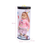 عروسک دختر سالی، با بدن پنبه ای و نرم، اندامی گوشتی، موهای کاشته شده و سایز بزرگ، حس واقعی عروسک بازی و همزاد پنداری را برای کودکان فراهم میکند. مناسب برای بغل کردن، آرایش بازی، نشستن در کالسکه و تجربه ای واقعی از عروسک بازی. این عروسک زیبا دارای لوازم جانبی از جمله گوشواره، کفش، شانه، برس و پایه نگهدارنده است و در بسته بندی طلقی شیک و جذاب عرضه می شود.